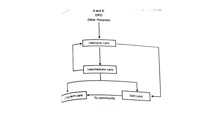 In this system the inpatient area is divided into separate sections. The first section is of intensive care unit, which takes patients in acute stages of illness. The second is the intermediary unit. The third is the convalescent unit, which takes patient who are nearly recovered and need the minimum of care. The argument for this system is that it facilitates the concentration of staff and equipment in the intensive care unit and that it leads to general economy and to better service to the patient.