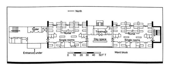The rectangular pavilion type of ward was designed in the year 1770 by Frenchman, later it was adopted by Florence Nightingale and is known by her name. The characteristics of the Nightingale ward are: