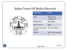 4. It was redesignated the Indian Council of Medical Research (ICMR) in 1949, with expanded scope of functions & responsibility.