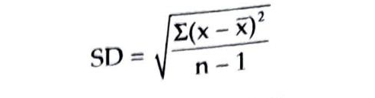 Standard Deviation: It is also called Root Mean Square Deviation It is denoted by Greek letter sigma or simply SD. It is derived by the following formula: