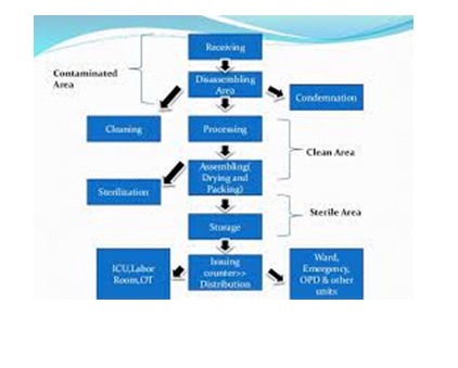 The central sterile supply department is responsible for providing sterile supplies of surgical Instruments, equipment, linen, and clothing. It serves the nursing units, operating rooms, intensive care units, delivery suites, nursery, outpatient department, accident and emergency, radiology, and clinical laboratories. The primary activities of the department are sterilizing, storing and distributing the dressings, needles and syringes, rubber goods (gloves, catheters, tubing), instruments, treatment trays and sets, linen packs, etc. There is one exception to the range of materials that should be sterilized centrally: the surgeon’s instruments used in major operating theatres. Because so many surgeons like to have their own individual sets of adjoining instruments, it is generally more convenient to arrange for these to be sterilized in a room the operating room. All other requirements for operations, including dressings, bowels, syringe, and so forth, can be supplied to the operating room from the CSSD.