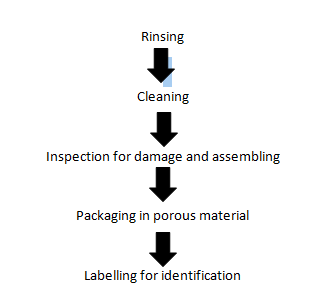 This area receives all the sterilized items from the sterilization-processing unit. Items are classified and separated again department wise to reassembling the set to ready for reuse. As a set it is ready for packing to supply the sterilized items to the concern departmental use.